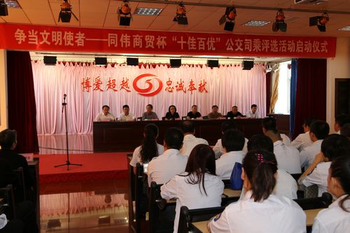 為推進唐山市精神文明建設,培育文明禮讓和諧之風,不斷提升公交服務質量,由唐山市精神文明建設委員會辦公室、市城管局、市交通運輸局、唐山廣播電視臺、市公共交通總公司、同偉商貿有限公司聯(lián)合舉辦的“爭當文明使者—同偉商貿杯·十佳百優(yōu)公交司乘評選”活動于9月18日正式拉開帷幕。市委宣傳部副部長、市文明辦主任李麗,市委宣傳部副部長、唐山廣播電視臺臺長王力,市城管局副調研員張志棟,市交通運輸局城客處處長楊文強,總公司總經理趙俊良、黨委書記夏保良和部分班子成員,同偉商貿有限公司副總經理盧志敏出席啟動儀式,司乘代表、乘客代表和新聞媒體代表共計300余人參加了啟動儀式。