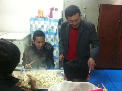 總經(jīng)理趙俊良來(lái)到二公司時(shí),正好遇上黃海廠家的兩名售后服務(wù)人員因工作需要留在了唐山過(guò)年,趙總真誠(chéng)地邀請(qǐng)他們一道吃餃子、過(guò)大年。他們由衷地稱贊唐山公交:我們的企業(yè),從沒遇到過(guò)這樣的事,感覺你們的企業(yè)就像一個(gè)大家庭。我們?cè)谶@里過(guò)年,也感受到了這濃濃的家一般的親情!黨委書記、副總經(jīng)理夏保良到三公司銀河路車場(chǎng)慰問(wèn)時(shí),不僅詳細(xì)了解了路隊(duì)節(jié)期的工作安排情況,還親自為職工煮餃子,遞到跑車回來(lái)的司機(jī)手中,微笑地囑咐他們趁熱吃、多吃點(diǎn)。狹小的廚房,水氣氤氳,處處洋溢著新春的喜悅和干群同心的和諧。