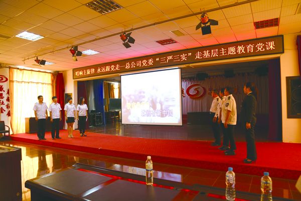 三嚴(yán)三實(shí)專題教育開展以來(lái),廣大黨員干部認(rèn)真按照總公司黨委制定的教育方案,一個(gè)環(huán)節(jié)一個(gè)環(huán)節(jié)地抓落實(shí)。為讓教育更富有吸引力,實(shí)效更突出,黨委編排了一堂與眾不同的黨課,采取了經(jīng)典紅歌演唱、優(yōu)秀黨員事跡誦讀、普通黨員暢談體會(huì)的形式進(jìn)行宣傳教育。課堂上,大家共同聆聽優(yōu)秀共產(chǎn)黨人李大釗、焦裕祿的事跡誦讀,觀看優(yōu)秀共產(chǎn)黨員楊善洲事跡介紹的DV短片,來(lái)自基層的三名優(yōu)秀駕駛員、共產(chǎn)黨員竇玉海、周麗媛和鄭玉曉以詩(shī)歌的形式講述了發(fā)生在崗位上的真實(shí)故事。各單位黨員代表也走上臺(tái),結(jié)合自身崗位實(shí)際,講述學(xué)習(xí)的心得感受。城管局副調(diào)研員張祚建參加了黨課走進(jìn)三公司活動(dòng),給予了很高的評(píng)價(jià),認(rèn)為黨課教育形式新,內(nèi)容實(shí),受震撼,希望把這種學(xué)習(xí)上的創(chuàng)新引入到工作中,落腳在實(shí)字上。