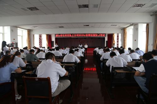 為進(jìn)一步鞏固法律法規(guī)的學(xué)習(xí)培訓(xùn)成果,不斷激發(fā)廣大干部職工學(xué)習(xí)法律法規(guī)的積極性與主動(dòng)性,9月9日下午,在市城管局的統(tǒng)一部署下,總公司開展了2015年中層干部法律法規(guī)知識(shí)考試??偣绢I(lǐng)導(dǎo)班子成員代表和123名中層干部參加了此次考試,實(shí)際參考人數(shù)占計(jì)劃參考人數(shù)的97%。市城管局高度重視,指派專人現(xiàn)場(chǎng)巡考??荚囀菍?duì)2015年度法律法規(guī)學(xué)習(xí)的檢驗(yàn),成績(jī)將納入中層干部考核考評(píng)??荚嚥扇¢]卷形式,內(nèi)容涵蓋了《憲法》、《行政訴訟法》、《行政處罰法》、《城市公共汽車電車客運(yùn)管理辦法》等相關(guān)法律法規(guī)。