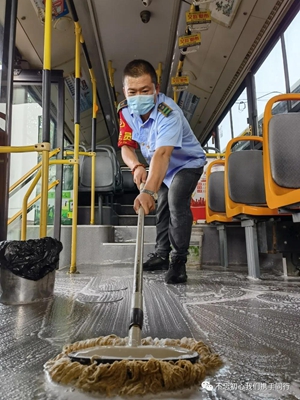 在“嚴(yán)”的制度管理下,五公司也將“情”字體現(xiàn)在工作的各個(gè)環(huán)節(jié)。在五公司開展衛(wèi)生大清掃活動(dòng)中,絕大部分的司機(jī)都是積極響應(yīng),但也有個(gè)別司機(jī)對(duì)突然增加的工作量不理解。針對(duì)此情況,五公司并沒有用制度及考核強(qiáng)制執(zhí)行,而是采取以“情”換情。拿花海公交場(chǎng)站來(lái)說,因?yàn)閯倓偼度胧褂?,?6輛車配備一個(gè)保潔人員的情況下,做到車輛衛(wèi)生精益求精只能通過司機(jī)自行進(jìn)行清掃。針對(duì)不理解的司機(jī),花海公交場(chǎng)站負(fù)責(zé)人張波副隊(duì)長(zhǎng)用行動(dòng)感化,他說:“我們的司機(jī)都很可愛,只是個(gè)別司機(jī)對(duì)突然的工作轉(zhuǎn)變不適應(yīng),他們不做那就我來(lái)做,時(shí)間長(zhǎng)了他們看在眼里,記在心里,現(xiàn)在也都紛紛加入了車輛衛(wèi)生大清掃活動(dòng)。”