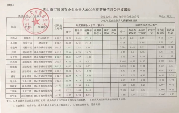 唐山市市屬國有企業(yè)負(fù)責(zé)人2020年度薪酬信息