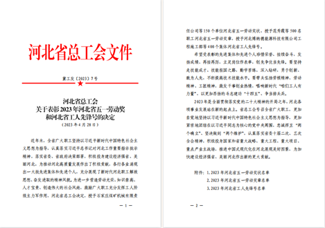 2023年4月28日,河北省總工會(huì)發(fā)布《關(guān)于2023年河北省五一勞動(dòng)獎(jiǎng)和河北省工人先鋒號的決定》,唐山交發(fā)集團(tuán)公交總公司二公司 2 路營運(yùn)車隊(duì)被授予2023年“河北省工人先鋒號”榮譽(yù)稱號,唐山交發(fā)集團(tuán)公交總公司四公司 46 路駕駛員翟澤明被授予2023年河北省五一勞動(dòng)獎(jiǎng)?wù)隆?/span>
